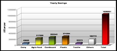 Up till the end of 2009, the LCPC has targeted seven main industrial sectors: Agrofood and Canning, Dairy, Paper & Cardboard, Plastic Production & Recycling Sectors, Textile Sector and others. The CP options implemented in each SME that participated in the LCPC programmes have led to a total yearly savings of more than One Million US Dollars.